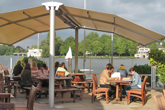 Die SUNRAIN-Lösungen von LEINER wurden für höchste Ansprüche entwickelt. Schutz vor Sonne und Regen sind selbstverständlich, aber auch bei starkem Wind müssen die Anlage nicht sofort eingefahren werden. Mit einer SUNRAIN machen Sie Ihre Außengastronomie oder Terrasse vom Wetter weitgehend unabhängig.