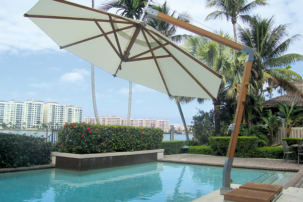Ebenso wie der Levante zur Premium-Reihe von Bambrella gehörend, ist er einer der stabilsten Freiarmschirm überhaupt der Sidewind. Alle Holzteile sind aus laminiertem Bambus gefertigt. Wie alle Bambrella-Modelle ist auch der Sidewind bis 90 km/h im Windkanal getestet worden - natürlich mit fester Bodenverankerung.
